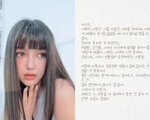 さらに「この文を書きながら目元が濡れて、心の片隅には愛と感謝でいっぱいになっている。これまでどれだけ待ってくれて、応援してくれて、温かく包んでくれたのか本当にありがとう」「私の心が向かうところは変わらず、ミンジ、ハニ、ヘリン、ヘインは私の2番目の家族だ」。