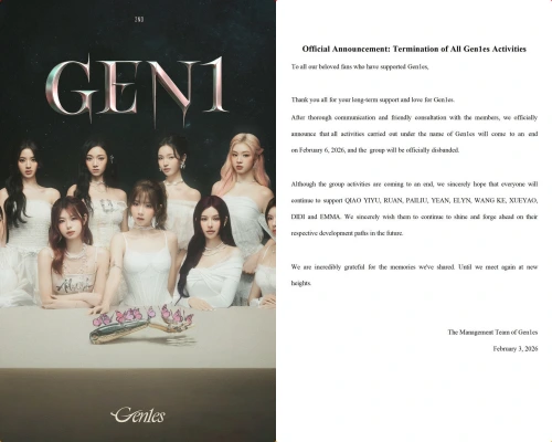 Gen1es側は3日、「メンバーとの話し合いの結果、2026年2月6日付で、Gen1esの全活動を終えることにした。グループは公式的に解散となる」と明らかにした。