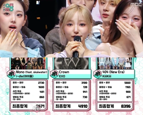 2月7日放送MBC「音楽中心」では、KiiiKiii「404(New Era)」, EXO「Crown」, i-dle「Mono」が1位候補にノミネート。このうち1位に輝いたのは、KiiiKiii!