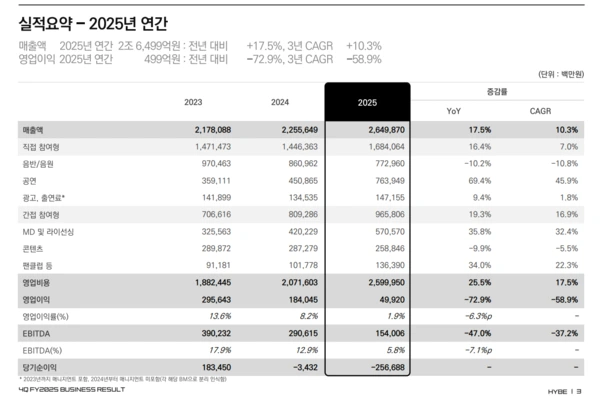 (HYBE、2025年Q3「赤字」に…売上高は過去最高「新人デビューで、費用かさむ」)