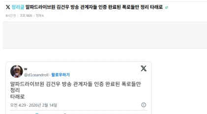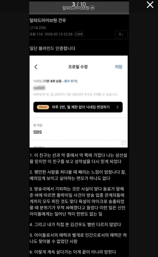 画像には、制作スケジュールが記載。「ALPHA DRIVE ONE」に関わったスタッフのようだ。このユーザーは「キムゴヌ、人柄が良くない」「放送業界で噂が広まっている。私は堂々としているから本名で書く。キム・ゴヌを排除しろ、本当に性格が悪い」と綴っている。