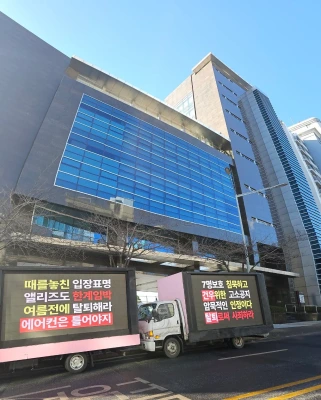 「キムゴヌ、脱退しろ!」AlphaDriveOneファン、トラック・花輪デモ…「Wakeone声明、暴露内容を事実上承認」