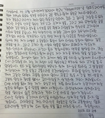 そんな中、韓国オンライン・コミュニティには、「悪質な書き込みをした。謝罪する」とする直筆文が掲載されています。