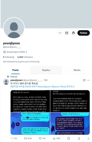 2024年11月にデビューした、「izna」。その半年後に脱退した元メンバー「ジユン」に、暴露アカウントが登場。「他練習生の私物窃盗」「侮辱」「後輩への雑用指示」が主張されています。