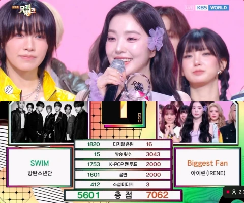 4月10日放送KBS2「ミュージックバンク」では、アイリン「Biggest Fan」とBTS「Swim」が1位候補にノミネート。このうち1位に輝いたのは、アイリン!