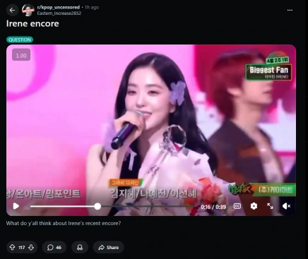 アイリン、アンコール生歌が酷評…音程とれず本人も苦笑「全然ダメ」「自分の歌なのに歌えない」 [Red Velvet]