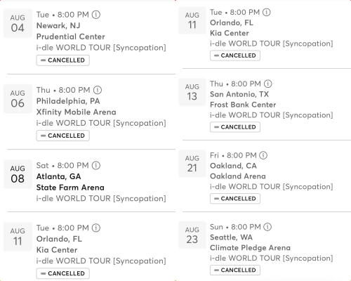 現在、ワールドツアーを展開中の「I-DLE」。その北米10都市での公演が全てキャンセルされています。