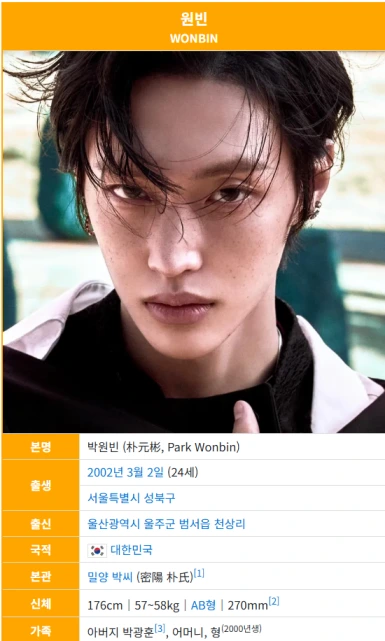 プロフィール上の身長は176cmとなっている。他のメンバーは、ソンチャン(185.6cm)、アンソン(184cm)、ウンサク(180cm)。「ウォンビン」の身長は最近まで、非公表だった。グループの中で一際小さく見えることもあり、正確な身長に、一部で大きな関心が寄せられ続けています。