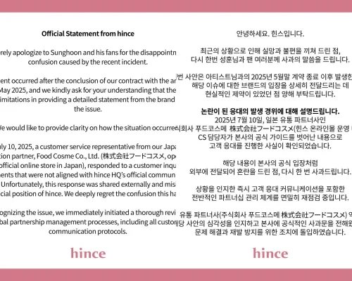 ニュース Enhypenソンフン「差別用語」騒動で、コスメブランド(Hince)「今後モデル起用しない」と問合せ回答も→訂正「本社と協議なしの内容」 時 2025/7/10 23:43 (5か月前)2025/7/10 23:44 (5か月前) コメント 123 コメント